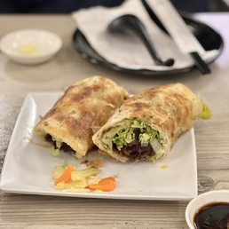 Yelp review for a free soda, one soda per review. My wife discovered this brand when she was on her girls' trip in Oregon. Quality/Quantity - Today we got the following, all recommended by our waiter: Beef Pancake Roll - Our guest's favorite. I have had these rolled differently (tighter and sliced into bite size pieces for easier eating). Basically, you have to eat these like a burrito, or with a fork and knife. Q-BAO - Was recommended and it was so good. I like the consistency of the bread, and the meat was so juicy inside the bun. Chicken Veggie Wontons with Chili Sauce. Dan Dan Noodles - My favorite of all the dishes, but again, all the dishes were good. Atmosphere - Good size restaurant. Parking can be very confusing, see pictures of signs. Open 7 days a week from 11am to 9pm or 10pm. Service - 5 stars. Jaylan was very professional and gave all perfect recommendations. Price - $46 + tip. Owner Comment - Congrats on your success since 2014 and with your 23+ locations.